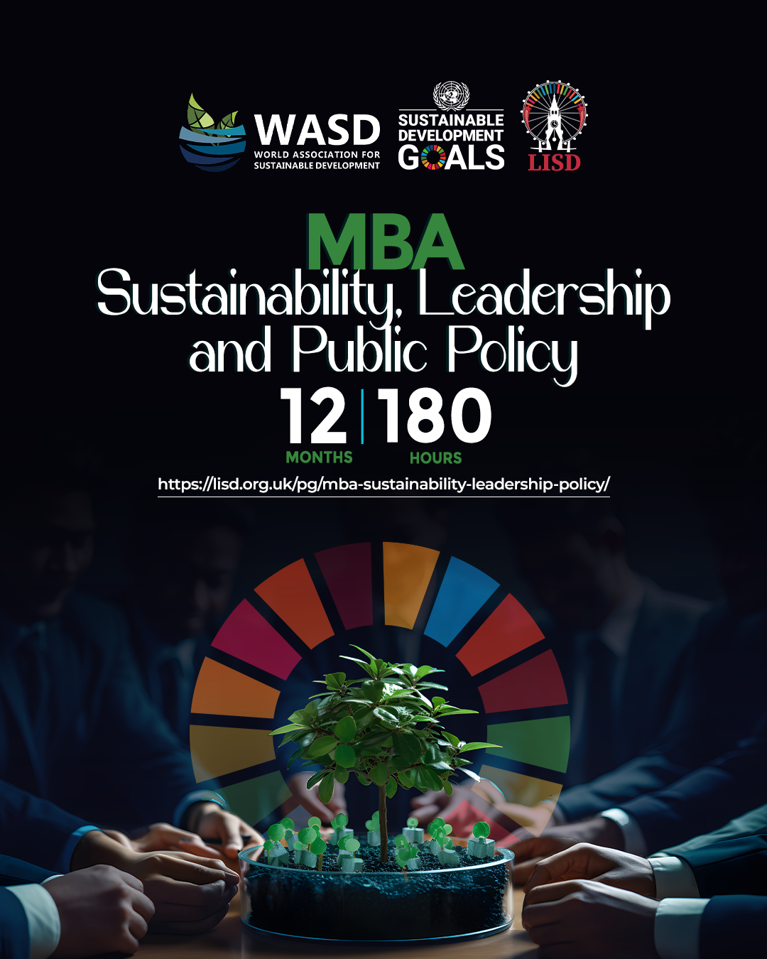 The MBA in Sustainability, Leadership and Public Policy at the London Institute of Sustainable Development (LISD) is a postgraduate programme designed to develop visionary leaders capable of driving sustainable transformation across sectors. Integrating the United Nations Sustainable Development Goals (SDGs 1–17) into every aspect of the curriculum, the programme combines rigorous business education with a deep understanding of environmental stewardship, ethical governance, and social equity.