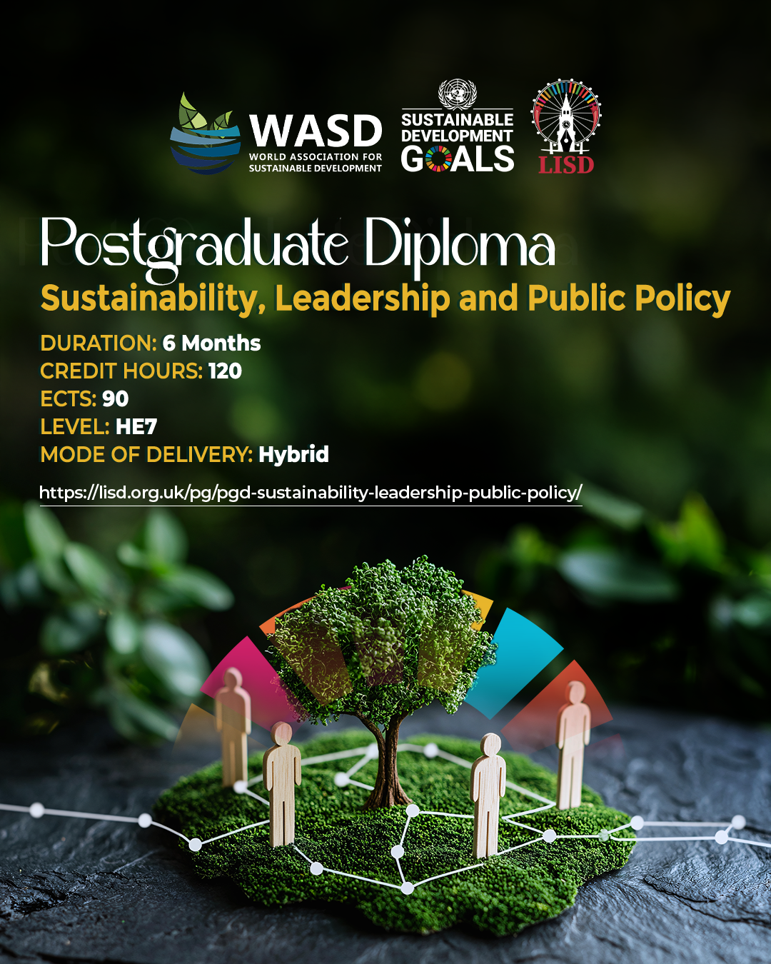 The Postgraduate Diploma (PGD) in Sustainability, Leadership and Public Policy at the London Institute of Sustainable Development (LISD) is a postgraduate programme designed to develop visionary leaders capable of driving sustainable transformation across sectors. Integrating the United Nations Sustainable Development Goals (SDGs 1–17) into every aspect of the curriculum, the programme combines rigorous business education with a deep understanding of environmental stewardship, ethical governance, and social equity.